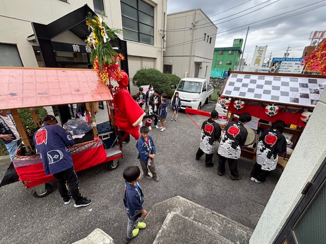 西川神明社にて秋の例大祭が執り行われました。子ども会等のおみこしやお獅子での巡回を行います。ファミリーペットにも回ってこられました。毎回、子どもの元気な声に励まされます。