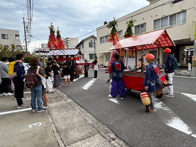 前後神明社の秋の大祭が開催され、お囃子保存会のみなさんが10月18,19日の2日間にわたり区内を周りました。19日の夜には前後駅前のパルネスさん前にて坂部の山車との「叩き合い」が行われました。本当にお疲れさまでした。