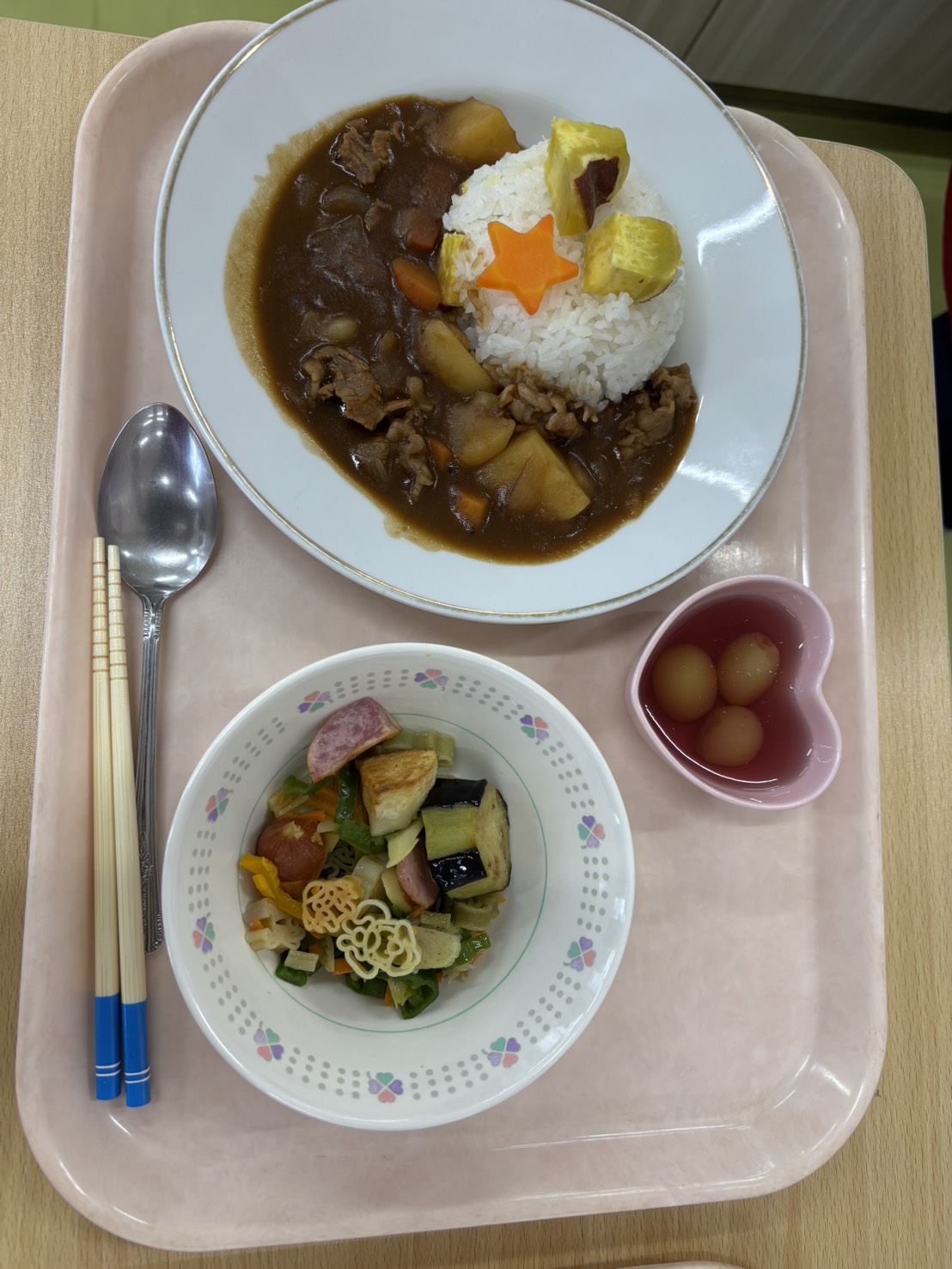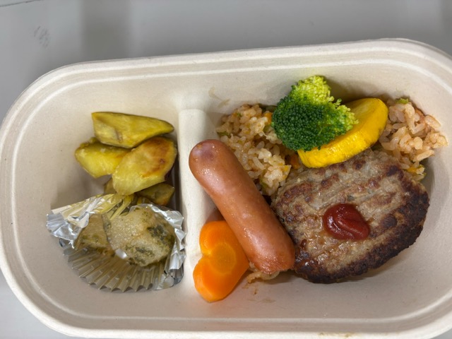 メニューも豪華で、ハンバーグ、ピラフ、ウインナー、とうがん、サツマイモでした。