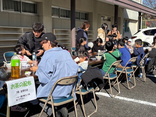 約80名の利用がありました。メニューは豚汁と炊き込みご飯とりんごとシャインマスカット・ドーナッツでした。