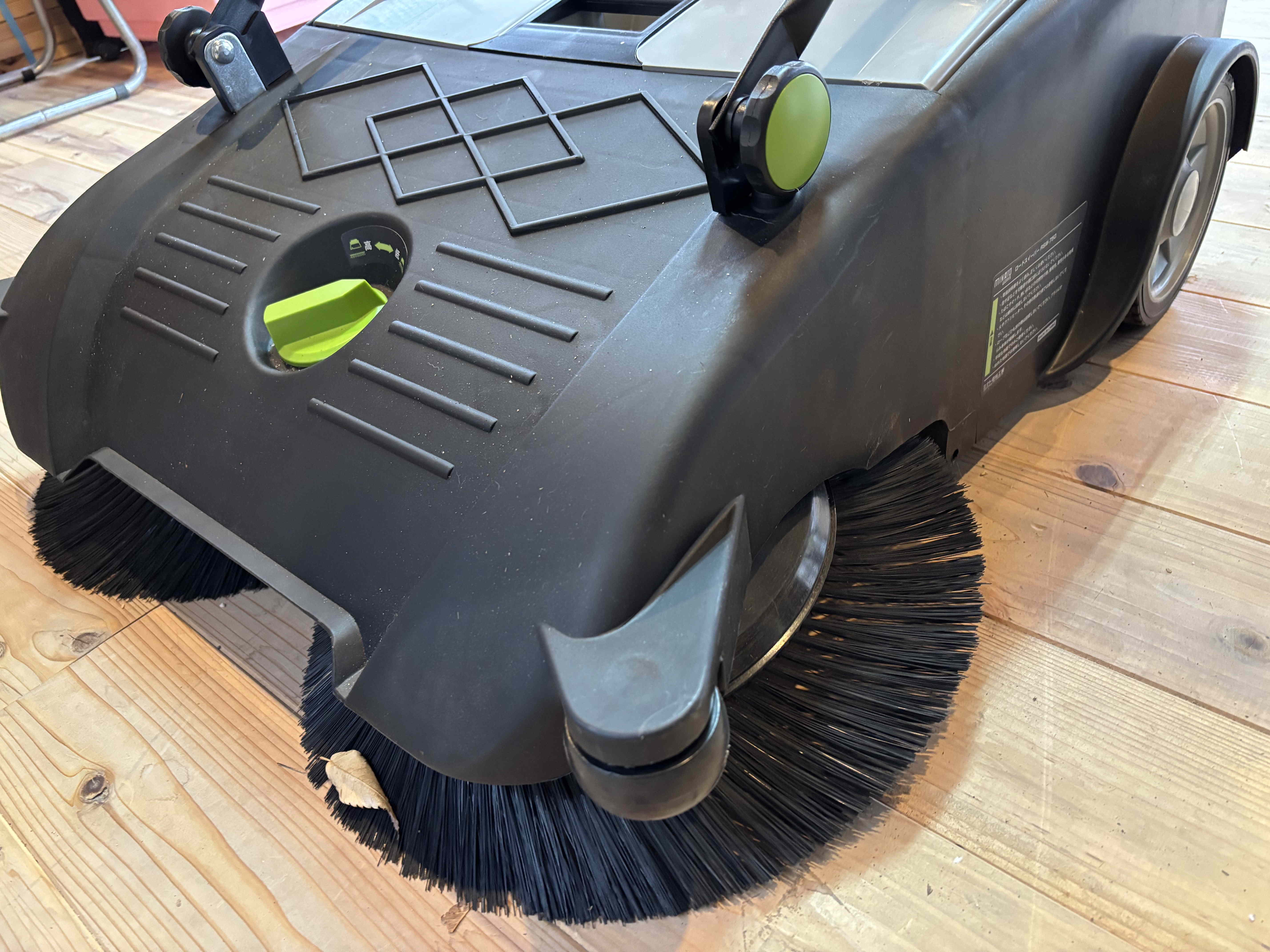 地域の歩道の落ち葉を回収ていました。手押しの動力で全面のブラシが回転して落ち葉等を回収してくれる手押し型の歩道清掃器です。ご依頼があれば貸し出しも行っております。お問い合わせください。