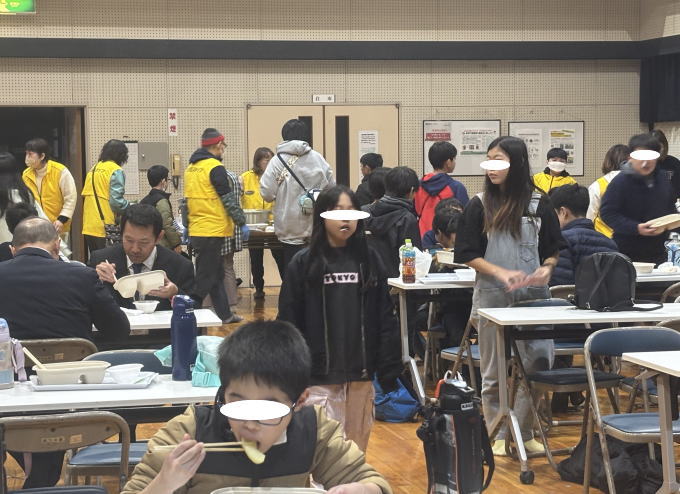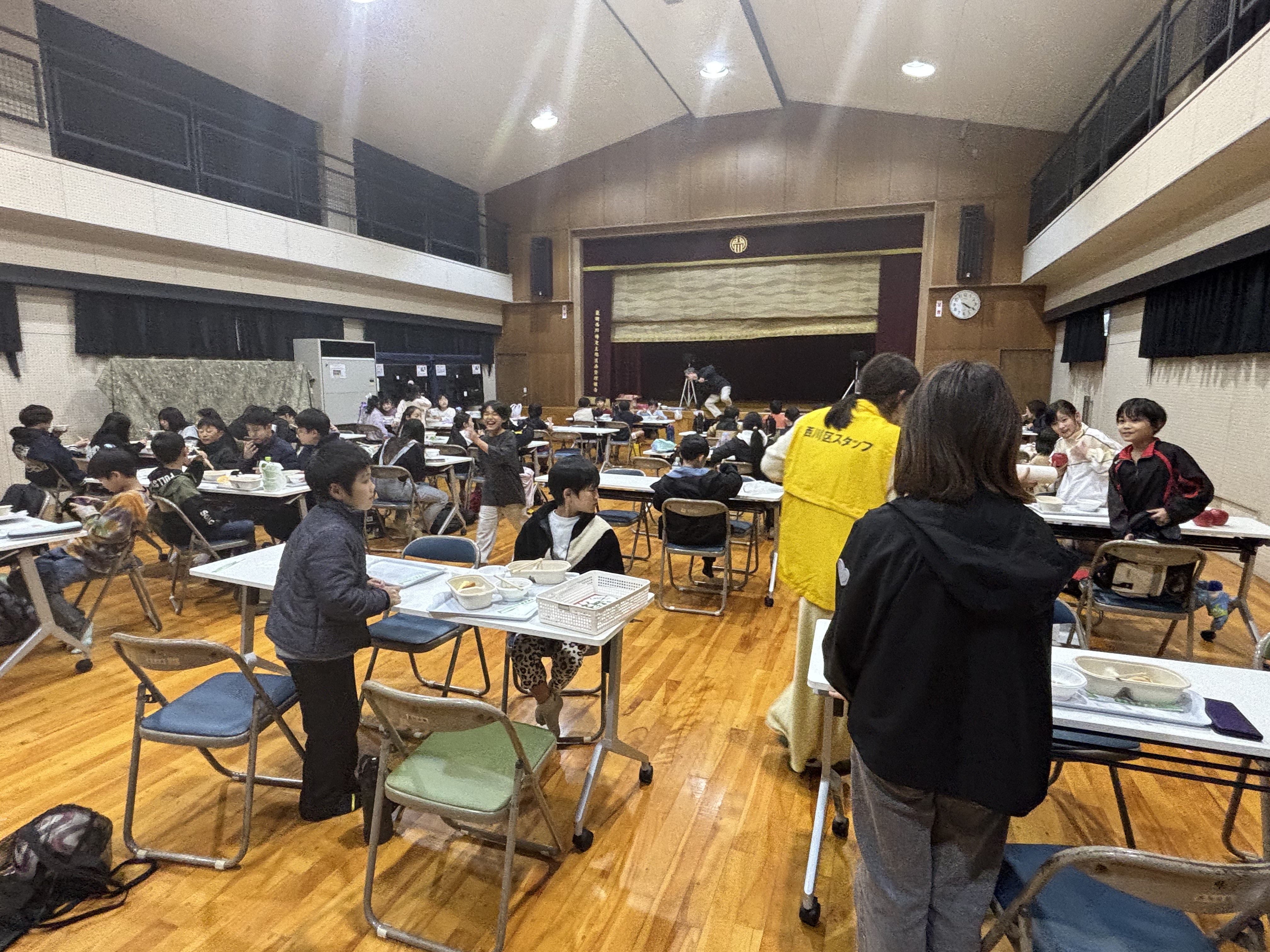 寒い中、西川会館の館内で「ひまわり子ども食堂」が開催されました。