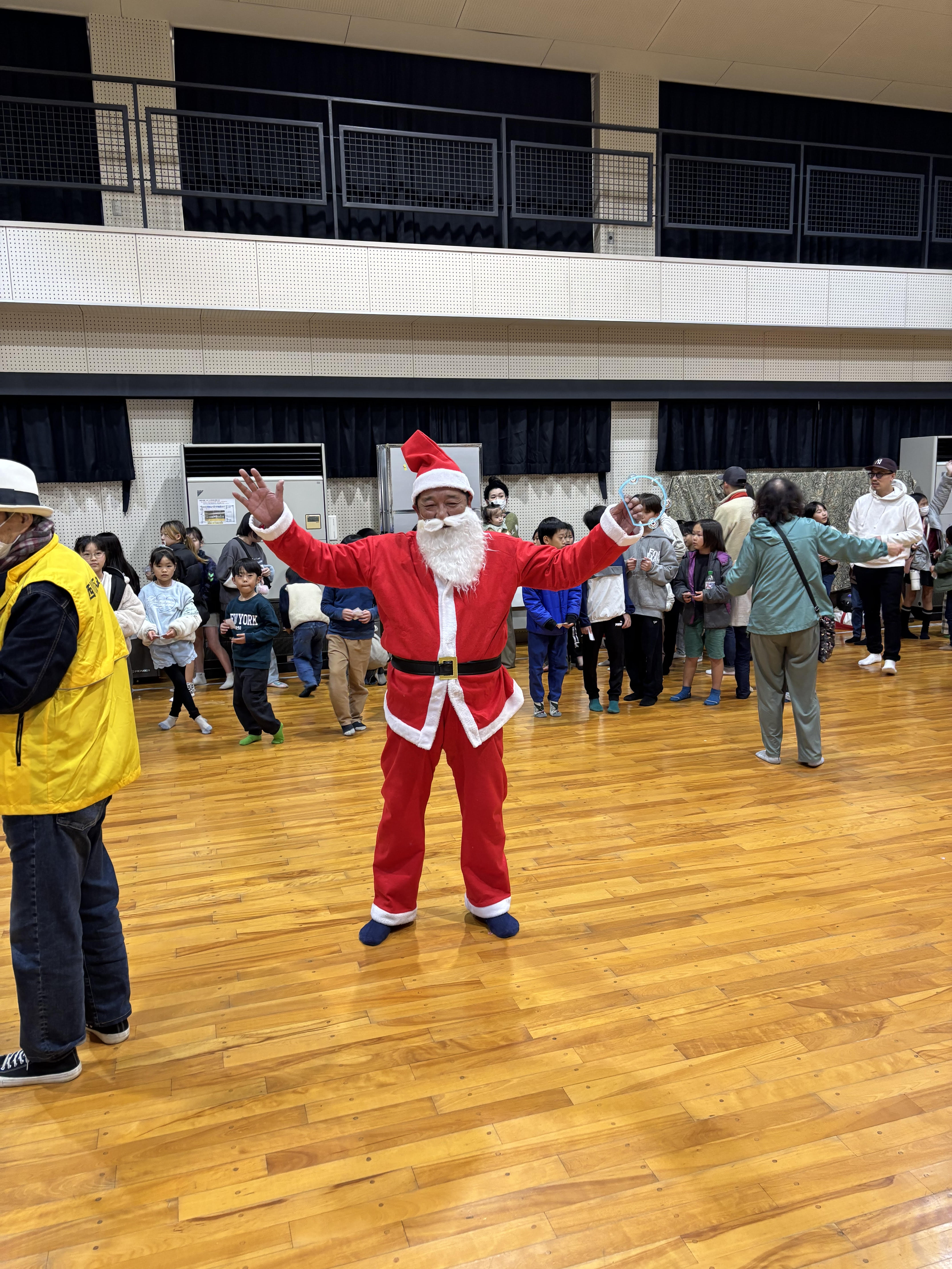 みんなでゲーム行い、ショートケーキやお菓子をお渡ししました。そして、サンタさんもお見えになり盛り上がりました。