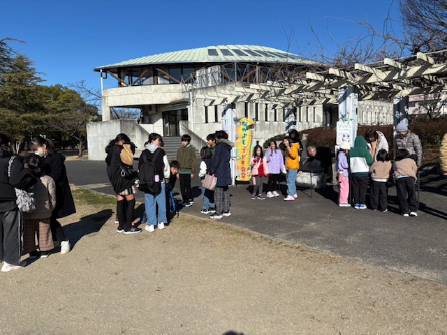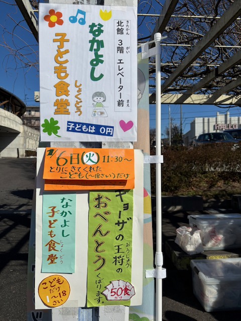唐竹公園にて「なかよし子ども食堂」のスタッフさんが、風の吹く寒い中で「餃子の王将弁当」を50名の子ども限定にてお配りしてました。公園で、すぐに食べている子どもさんもいました。