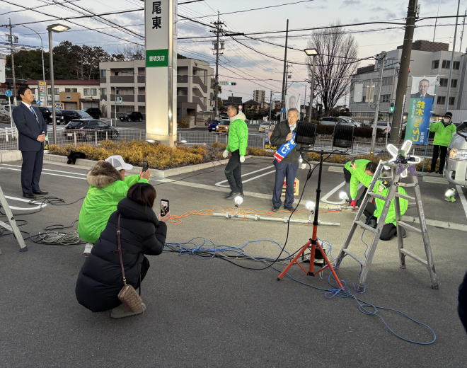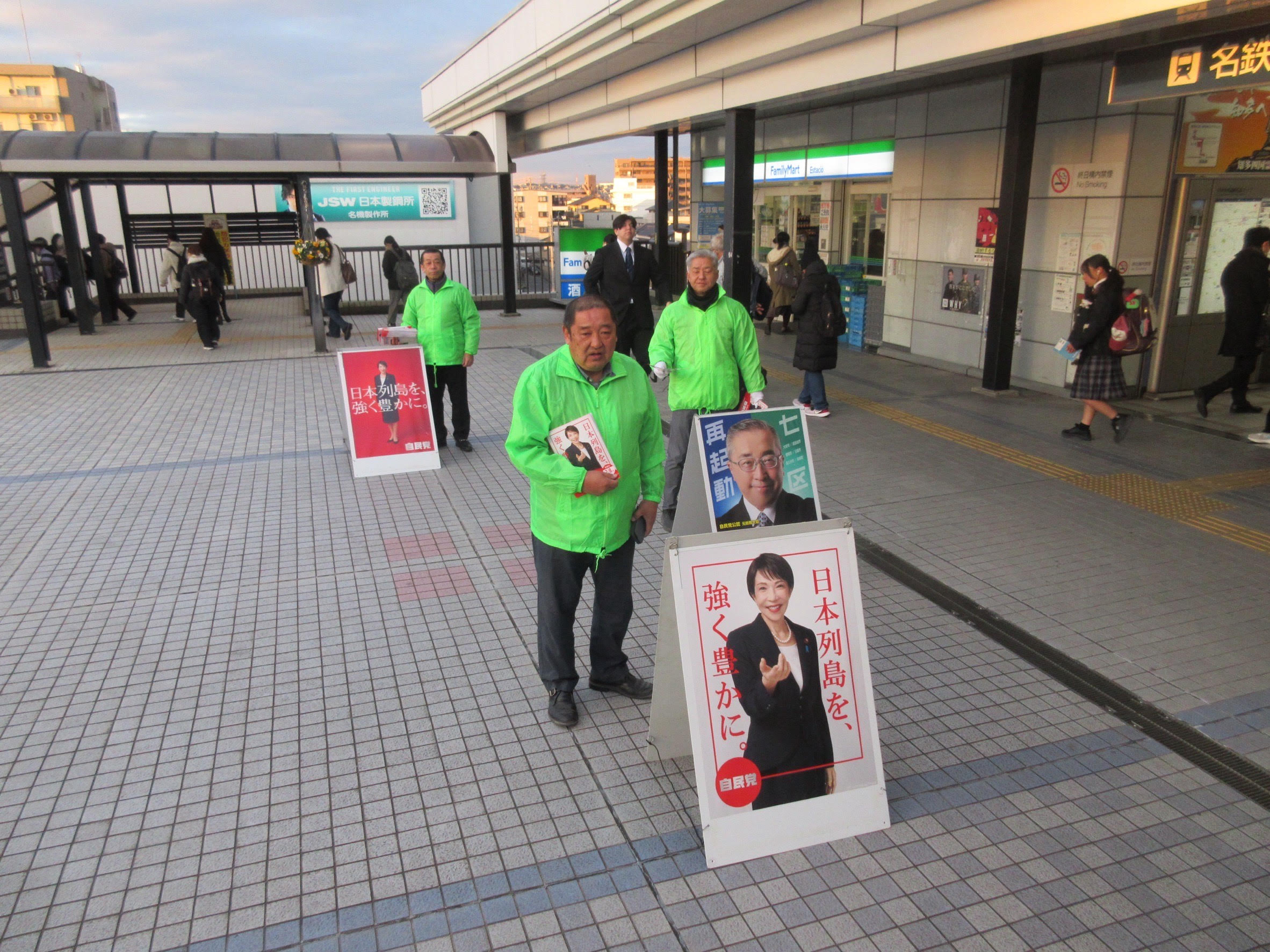 昨日の7時から前後駅前に衆議院選挙の応援を行っています。