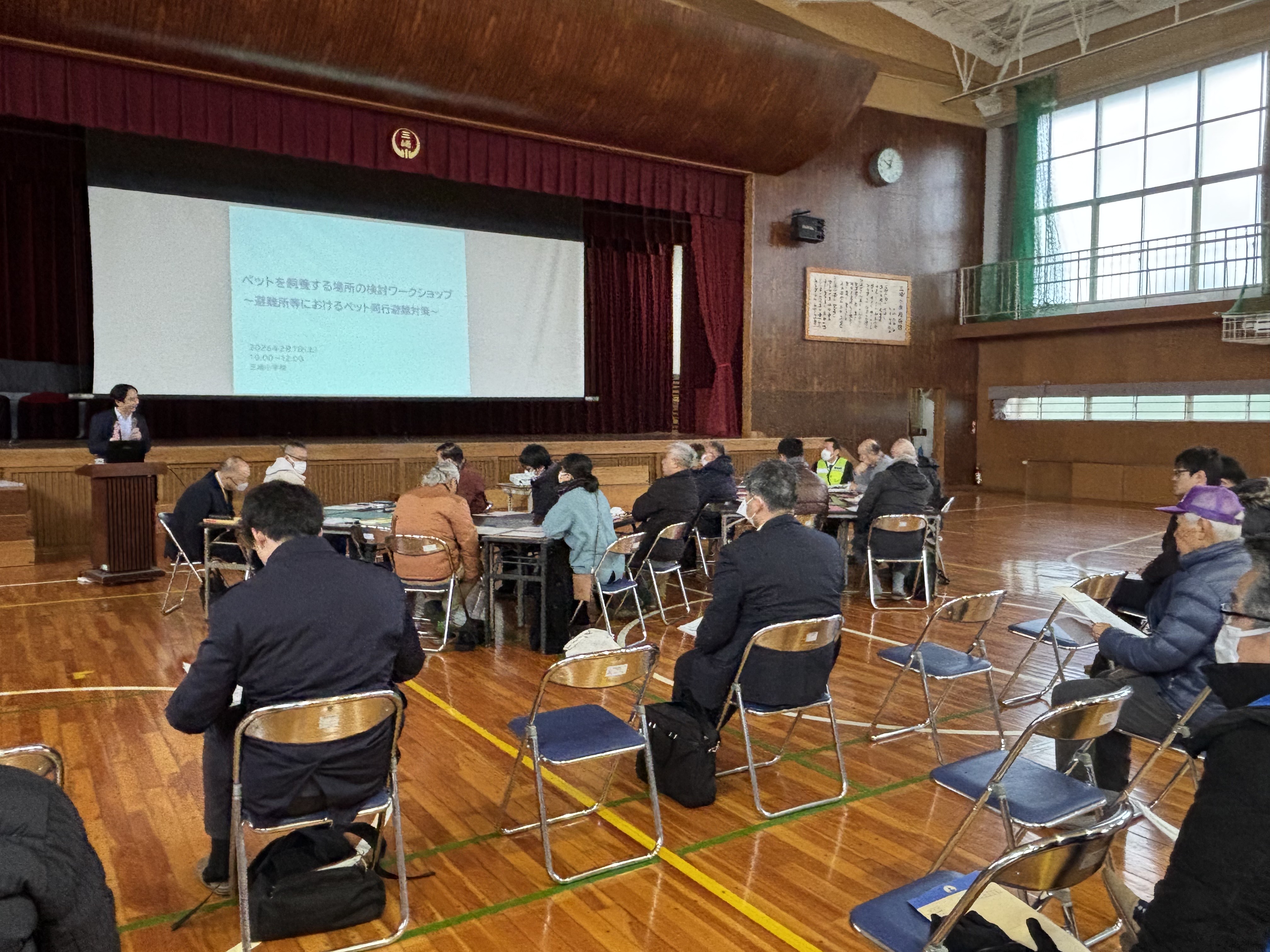 三崎小学校にて「ペット同行避難対策ワークショップ」が参加者24名で開催されました。