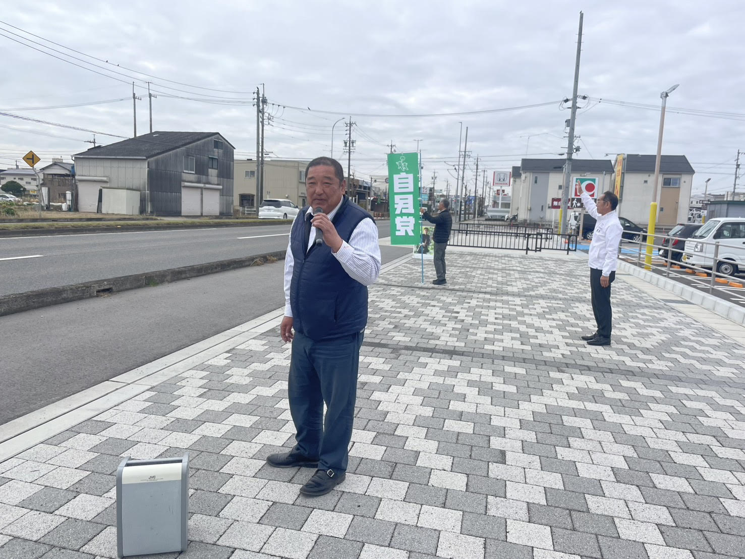 市内のオークワ緒明け店の前にて自民党の街頭活動を行いました。